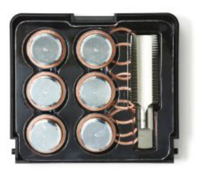 סט לתיקון בורג שמן 15 מ"מ תיקון הברגה בפקק שמן, 6 יחידות פקק+ דיסקיות נחושת, מברז 1.5-15 מ"מ מקט:047182 SIGNET