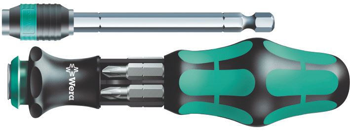 מברג טלסקופי WERA עם 6 ביטים משולבים בראש המברג , ומוביל עם נעילה- 889/4 R 1 x 1/4"x100;851/1 Z PH 1 x PH 1x25; 1 x PH 2x25;855/1 Z PZ 1 x PZ 1x25; 1 x PZ 2x25;800/1 Z 1 x 1,0x5,5x25; 1 x 1,2x6,5x25;