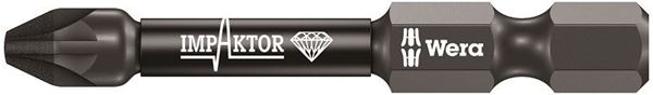 ביטים 855/4 IMP DC Impaktor יישום: מתאים לבורגי פוזידרייב, מוביל: משושה 1/4", מתאים למחזיקי ביט DIN 3126-D 6.3 , ISO 1173, עיצוב: טכנולוגית Impaktor מבטיחה אורך חיי שירות מעל הממוצע גם בתנאים קיצוניים הודות לניצול מיטבי של מאפייני החומר וגיאומטריה מתוכננת באופן אופטימלי, המתאימה במיוחד לשימוש עם מברגות אימפקט קונבנציונליות. ציפוי היהלום המחוספס מקטין את החשש להחלקת ראש הבורג החוצה בשל התנגדות טובה יותר לחיכוך. WERA