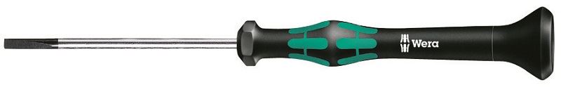 מברג 2035 לברגים מחורצים ליישומי אלקטרוניקה,יישום: ברגים מחורצים, להב: עגול,עיצוב:ציפוי כרום, קצה שחור, ידית: Kraftform Micro עם מאפיין מונע סיבוב, רב קומפוננטי WERA