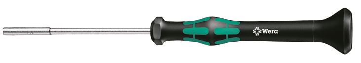 מברג בוקסה 2069 ליישומי אלקטרוניקה, יישום:לולבים, ברגים ואומים עם ראש משושה, להב: עגול, עיצוב:ציפוי כרום, קצה שחור, ידית: Kraftform Micro עם מאפיין מונע סיבוב וכיפת סיבוב, רב קומפוננטי WERA