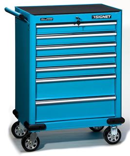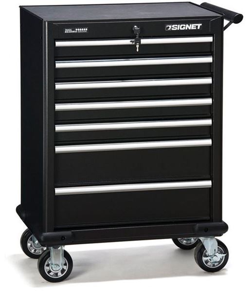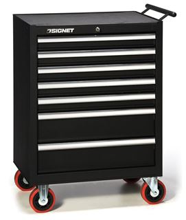 ארונות/עגלות כלים 7 מגירות עם מיסבים, בצבעים: אדום/כחול/שחור, רוחב כללי: 675 מ"מ, עומק כללי 460מ"מ, גובה כללי: 955, משקל כולל: 55 ק"ג, מקטים 054090-054092 SIGNET