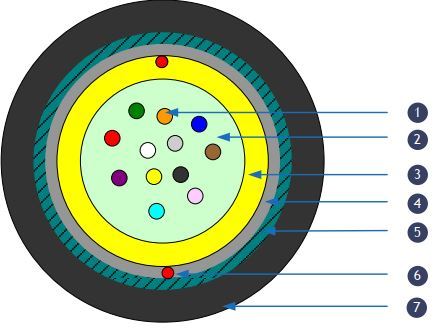 כבל אופטי מבוסס צינורית מרכזית אחת ובתוכה 4 סיבים - משוריין