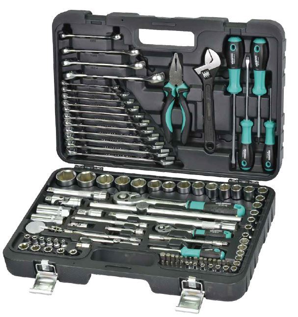 סט בוקסות "1/2 ו- "1/4 מעורב מ"מ הכולל 101 י"ח במארז פלסטיק קשיח הכולל: פליירים קטרים, מברגים ומפתחות רינג פתוח.WHIRLPOWER