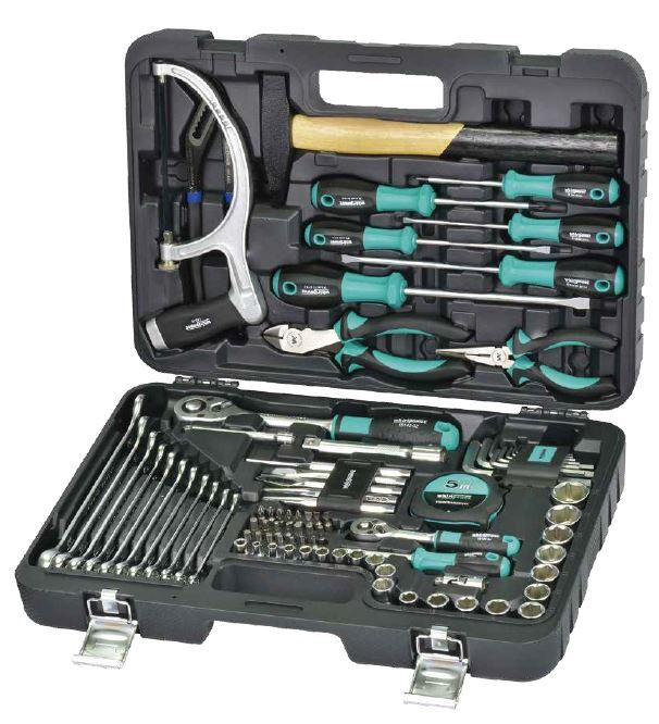 סט בוקסות "1/2 ו- "1/4 מעורב מ"מ הכולל 87 י"ח במארז פלסטיק קשיח הכולל פליירים, מברגים פטיש ומשור / מסור/משור / משור / מסור קשת WHIRLPOWER