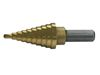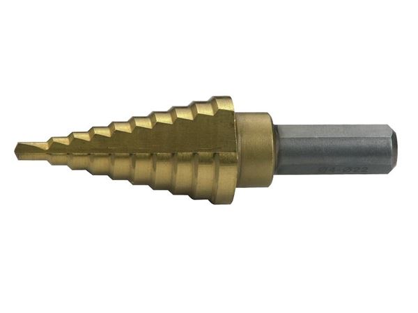 מקדח רב קודח / מדורג לביצוע חורים בלוחות מתכת דקים מקדח מדורג מצופה טיטניום ניטריד עם קשיות פני שטח המאפשרת לכלי להחזיק פי 4-5 מאשר ביטים רגילים של מקדחים מדורגים. משטח זה גם מפחית את החיכוך, והדבר יוצר כלי הפועל בטמפרטורה נמוכה יותר, ולמעשה משמן את עצמו כאשר הוא מתייבש. קודח חורים בטווח של 4-22 מ"מ בצעדים של 2 מ"מ קנה בגודל "3/8 (10 מ"מ) מקט:229-SD ,יצרן:BAHCO