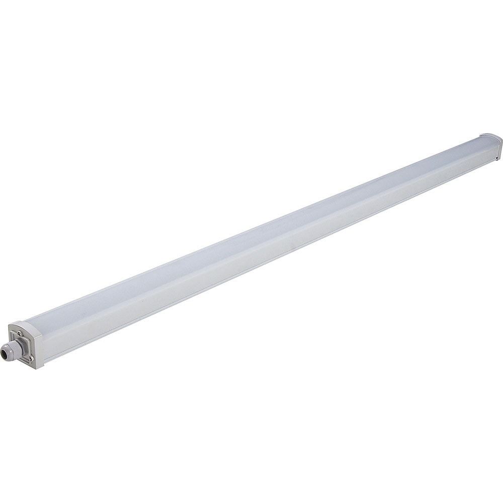גוף תאורה מוגן מים ואבק, עשוי מפוליקרבונט IP65.מתאים למבנים תעשייתיים, מחסנים, חניונים ואולמות יצור.