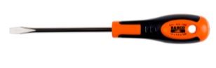מברג שטוח מברג שטוח רוחב 8 מ"מ אורך להב 175 מ"מ לברגים עם ראש חריץ- שטוח ידית: ידית דו קומפוננטית עם חור לתלייה. להב המברג : פלדה באיכות גבוהה. ניקל מצופה כולו מוקשה BAHCO
