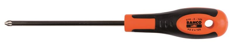 מברג Pozidriv מברג לברגים עם ראש Pozidriv. ידית: ידית 2 קומפוננטים עם חור תלייה. חיבור מושלם בין הידית והלהב להב: פלדה באיכות גבוהה, ציפוי ניקל והקשיה מלאה סימון: מספר החלק והגודל מסומנים על גבי הידית ISO 8764 יצרן:BAHCO