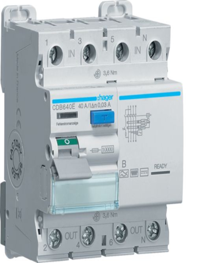 Product_Model ממסר פחת לטעינת כלי רכב HAGER CDB640E 30MA 4X40A