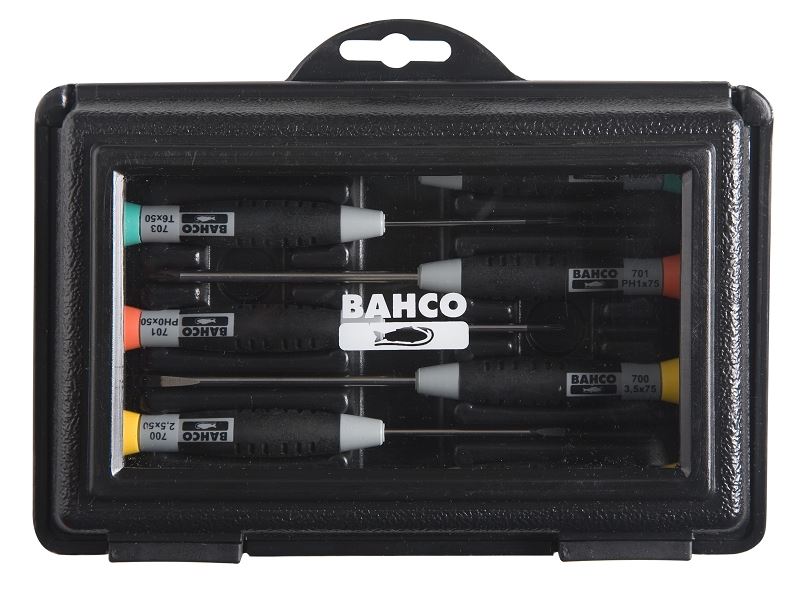 סט מברגים שענים מניאטוריים מדויקים, 7 יחידות לברגים עם ראש מחורץ, פיליפס ו- TORX® במארז פלסטיק עם חור לתלייה, סט שענים מקט:706-4 ,יצרן:BAHCO