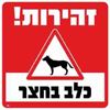 שלט זהירות כלב בחצר גודל 30*30