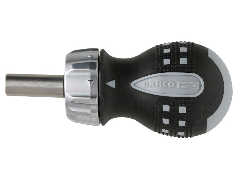 מברג גוץ – בולדוג מחזיק ביט 1/4" רטצ'ט, קצר ידית: ידית עשויה משלושה רכיבים עם גימור מחוספס, קומפקטית כדי לאפשר גישה לחללים צרים קנה מגנטי מאבטח את הביט במברג ומאפשר להחליף ביט בקלות מהלך רטצ'ט חלק, המאפשר שלושה מצבים של מנגנון הרטצ'ט: קדימה, אחורה ונייטרלי. מקט:808050S ,יצרן:BAHCO