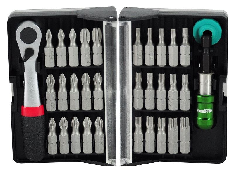 סט ביטים 32 ייחידות עם מתאם וידית רצ'ט לביטים, מקט: 96-3932 יצרן WHIRLPOWER