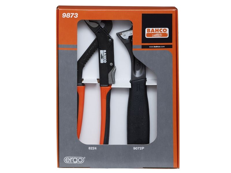ערכת כלים הכוללת מפתח שוודי מתכוונן 9072P ופלייר משאבה פתיחה מהירה 8224 ארוזים בקרטון גלי ידידותית לסביבה מקט:9873 ,יצרן:BAHCO