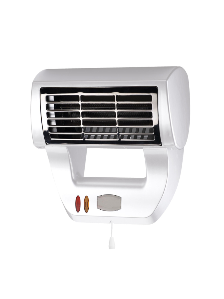 מפזר חום טורבו עם 2 דרגות הפעלה.ניתן לתליה על הקיר.הפעלה בעזרת חוט משיכה.בטוח לשימוש מיועד לאמבטיה ולחדרי ילדים.עם פעולה שקטה.הספק: 2600W.