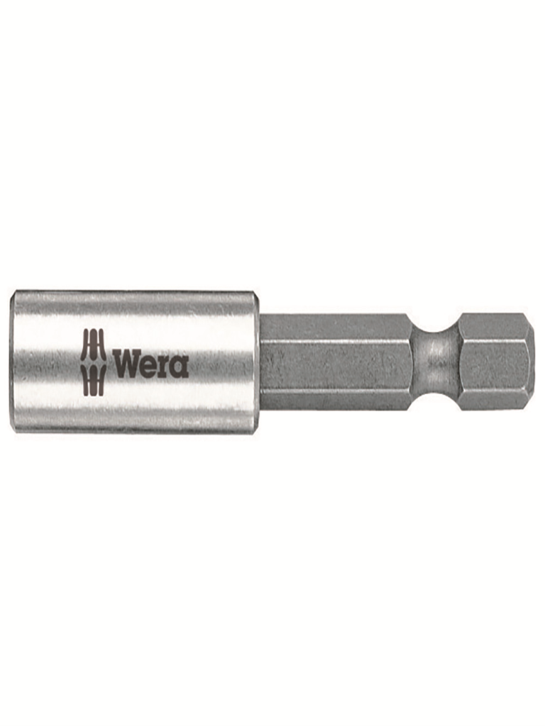 | Universal holder for the take-up of bits with 1/4" hexagon head drive as per DIN ISO 1173-C 6.3. Stainless steel sleeve for very special corrosion protection. The retaining ring ensures an optimum fit of the tool in the holder. The strong permanent magnet holds the bits absolutely securely. 1/4" hexagonal, suitable for power screwdrivers with take-up as per DIN ISO 1173-F 6.3. |