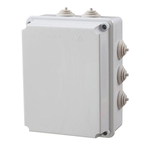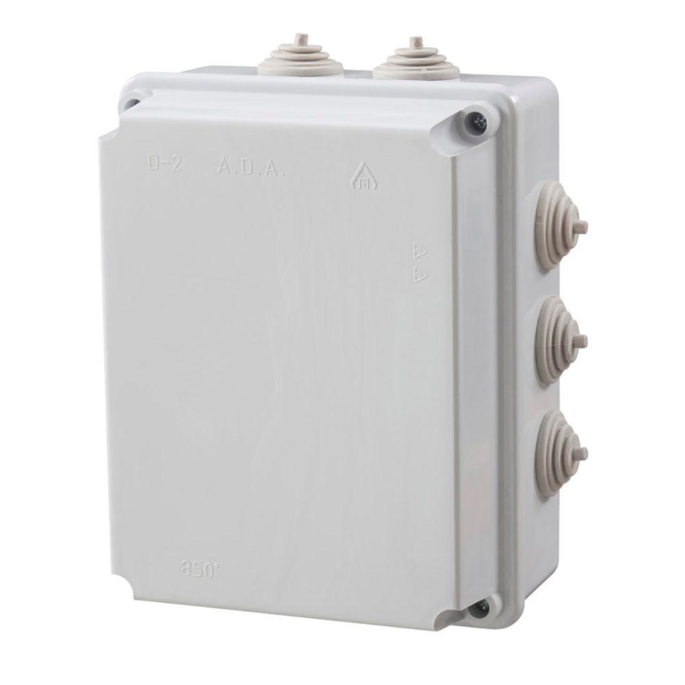 קופסת התקנה חיצונית D-2P אטום עם פטמות בגודל 190x150x100 מ"מ, עם דרגת אטימות IP55. תוצר ישראלי עשוי פוליקרבונט וכולל תו תקן ישראלי.