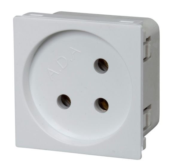 שקע כח ישראלי יחיד המתאים לשימוש בעמדות העבודה המודולריות.  מתאים לשימוש עם מכשירי חשמל ישראלים תקניים ועמיד במיוחד. מוצר איכותי מבית המותג עדא פלאסט.