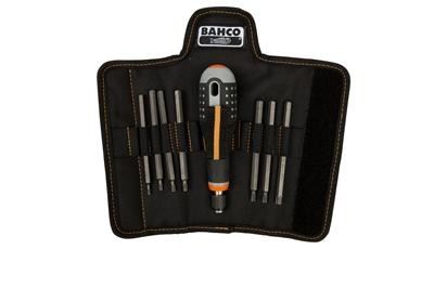 מברג ERGO עם סט להבים להחלפה, 6 חלקים ידית ERGO עם מחזיק ביט לשחרור מהיר 1/4" (מערכת ננעלת לנעילה בטוחה וקלה). ידית: ידית עשויה משלושה רכיבים, למקסום נוחות המשתמש והעברת הכוח קל לבחור בקצה הנכון, הודות לידית עם קוד הצבע להבים משושים באורך 100 מ"מ. גימור זרחן. קומפלט עם נרתיק נפתח המכיל 6 להבים אריזה למכירה: צינור פלסטיק שקוף (PVC) עם חור לתליה. מקט:BE-8573 ,יצרן:BAHCO