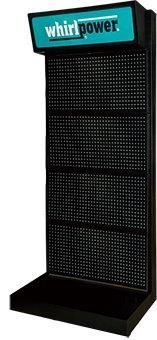 סטנד ריצפתי לתליית כלי עבודה רוחב 952 מ"מ גובה 2040 מ"מ משקל 50 ק"ג צבע שחור. מבנה תחתון יציב עם משטח להנחת מוצרים וגלגלים. תוצרת WHIRLPOWER