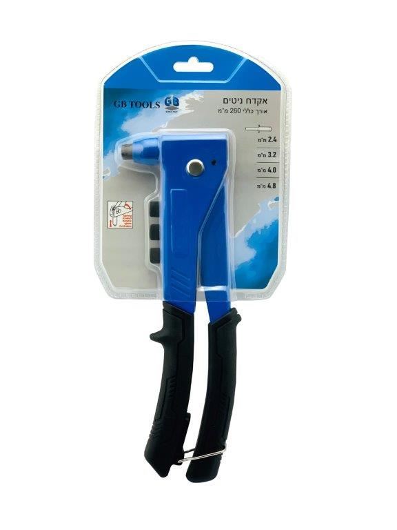 אקדח ניטים מקצועי אורך כללי 260 מ"מ . מתאים לניטים במידות 2.4 , 3.2 , 4 , 4.8 מ"מ , עשוי מאלומיניום