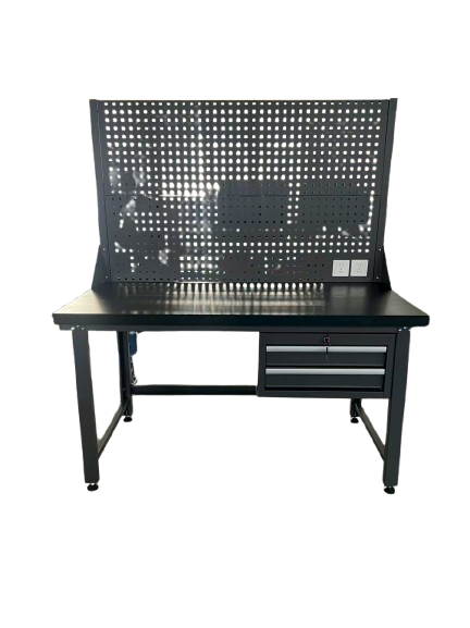 שולחן עבודה מקצועי הכולל עם מגירות צד ולוח תליה מחורר