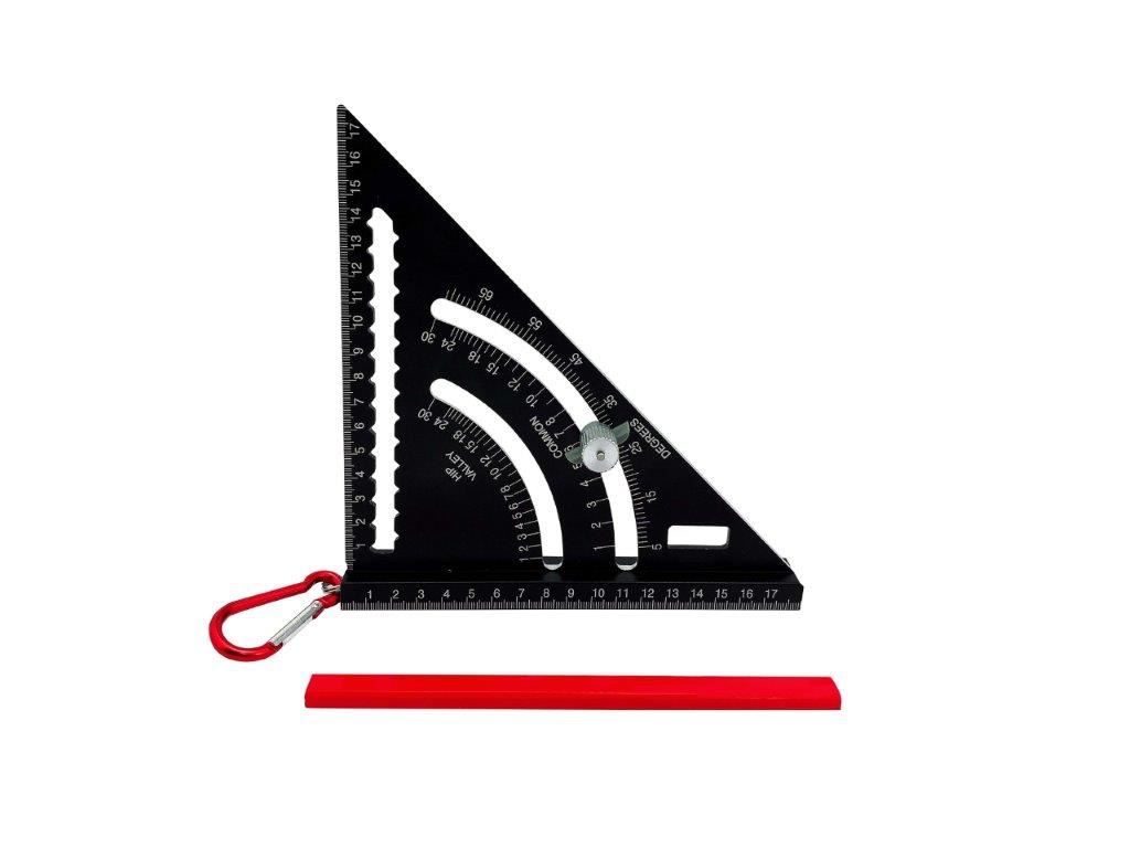 זוית רב תכליתית לנגר עם עפרון נגרים מובנה וקרבינה קפיצית לנשיאה קלה. מיוצר מסגסוגת אלומיניום עם סימונים חרוטים המאפשרים לסמן קו עם עפרון או סכין בעת חיתוך של קירות גבס. שנתות אילו מאפשרות גם חיתוכים מדוייקים בעת בנייה של גגוץ מעץ ניתן לשרטט זוית 90 מעלות , קו איזון קו אנכי וציון נקודת מרכז שווה