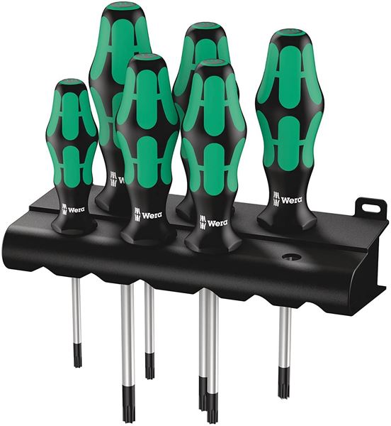 סט מברגים 1367/6 TORX WERAיישום: בורגי TORX, תכולה: סט 6 חלקים בקרטון תצוגה. 1367 TORX® 1 x TX 10x80; 1 x TX 15x80; 1 x TX 20x100; 1 x TX 25x100; 1 x TX 30x115; 1 x TX 40x130;