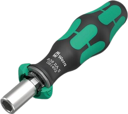 מברג קטן במיוחד עם פונקציונליות רצ'ט אינטואיטיבית. מנגנון הראצ'ט עם שיניים עדינות המשולבת בידית (36 שיניים/זווית חזרה 10°). מקל ומאיץ את העבודה בזמן תהליך ההברגה ללא צורך במיקום הכלי מחדש. סיבוב הכלי מזרז את העבודה. מנגנון הראצ'ט המוטבע כולו בידית מבטיח עבודה נוחה מאוד וללא מאמץ. מעבר ארגונומי לכיוון השעון/נגד כיוון השעון או למצב 0. ידית Kraftform Plus להברגה ארגונומית, הימנעות משלפוחיות ויבלות. מברג מגנטי מחזיק ביטים משושה "1/4 תוצרת WERA גרמניה