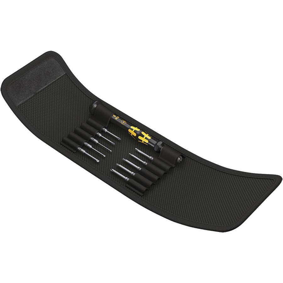 סט מברגים מיניאטוריים בנרתקים אנטי סטטי ESD. הסט כולל ידית מיניאטורית מדגם 1013 ואליה מתחברים להבים קצוות מברגים - ביטים שונים שטוחים פיליפסים טורקסים/כוכב ואלן. הסט מגיע בנרתיק קשיח ואיכותי תוצרת WERA גרמניה