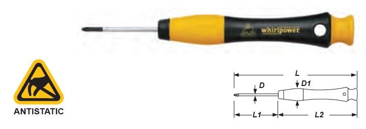 מברג מיני/שען פיליפס אנטי סטטי ESD במידה PH00 ווירלפאוור