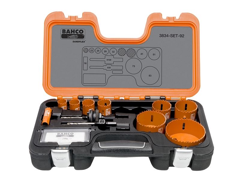 סט מקדחי כוס בי-מטל Sandflex®הכולל גדלים פופולריים בתעשייה ההנדסית, תעשיה המים והסניטציה ותעשיית התקנות החשמל. הסט כולל מקדחי כוס במידות 16,22,25,29,32,41,51,73,83 ומובילים ומגיע במארז פלסטיק קשיח ואיכותי