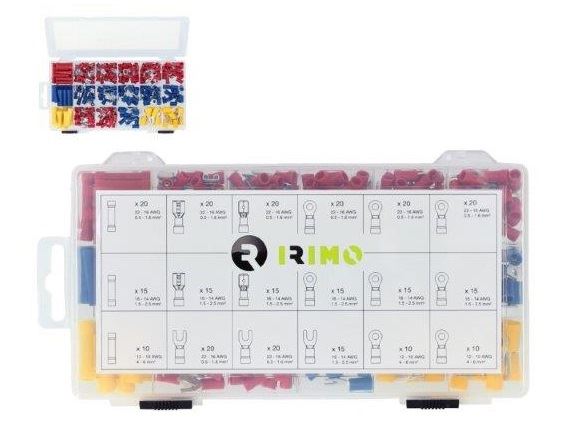 כמות של 45 שרוולי קצה מבודדים בקטרים שונים 250 מחברי תקע מבודדים עם צורות וקטרים שונים כמות של בקופסת פלסטיק עם תאים IRIMO
