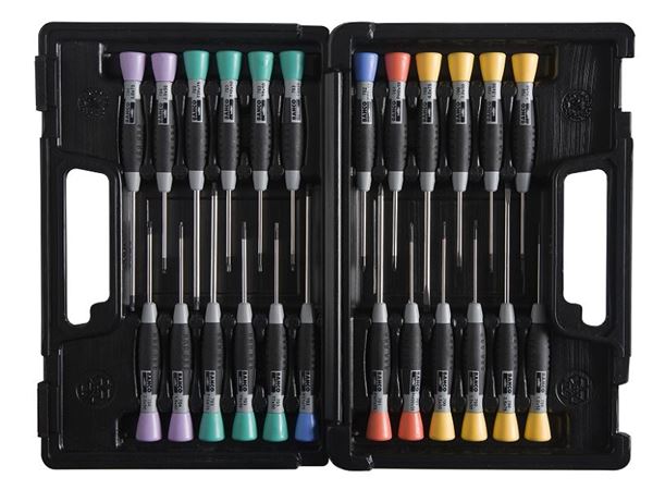 סט מברגי שען מדויקים, 24 יחידות לברגים עם ראש מחורץ, פיליפס, Pozidriv, TORX® ומשושה בקופסת פלסטיק עם חור לתלייה, סט שענים מקט:706-5 ,יצרן:BAHCO