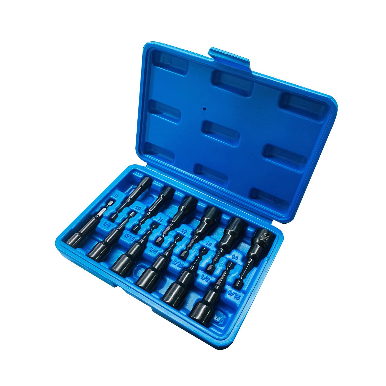 סט בוקסות מגנטיות שחורות מחוזקות עם קנה המתאים למברגת אימפקט משושה "1/4 במארז פלסטיק קשיח ואיכותי ובתוכו 12 יחידות במידות מילימטריות : 8 , 10 , 11 , 12 , 13 , 14 מ"מ ובמידות אינצ'יות : 1/4 , 5/16 , 3/8 , 7/16 , 1/2 , 9/16.