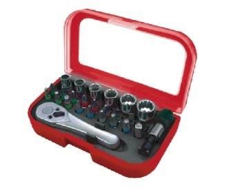סט בוקסות מ"מ 28 יח' "1/4 עם ביטים וידית רצ'ט מיני