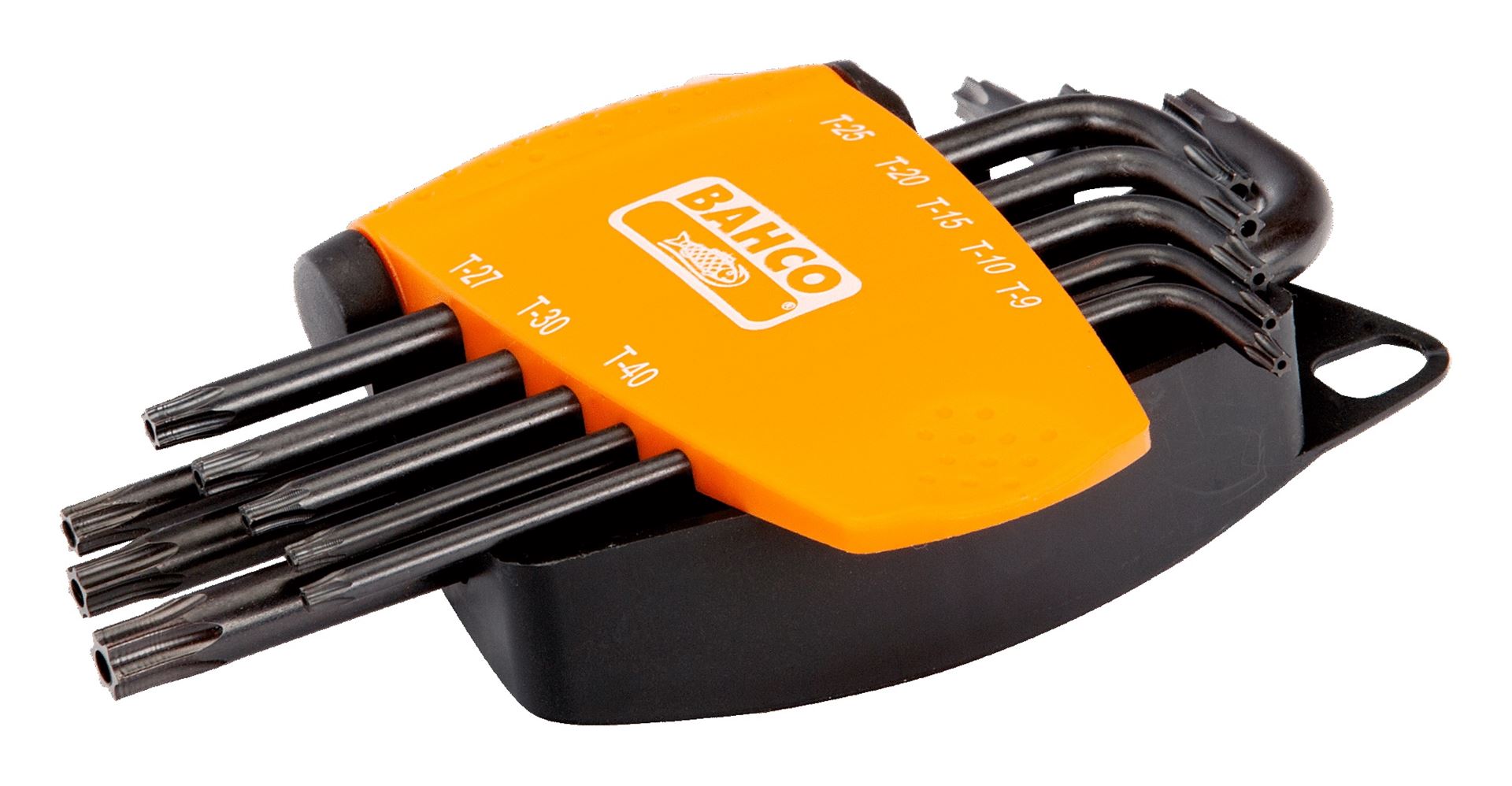סט מפתחות טורקס עם חור TAMPER הכולל 8 מפתחות ממידה TX9 ועד מידה TX40 מפתחות TORX® TAMPER העמידים בפני חבלה עם זרוע ארוכה מספיק המעבירה מומנט ונגישות גבוהים יותר גימור מחומצן מספק הגנה עילאית על פני השטח; דיוק גבוה יותר בקצה פלדה איכותית, קשוחה לחלוטין תפס פלסטיק קומפקטי כפול כל הגדלים ממותגים על המכסה לבחירה קלה תוצרת BAHCO