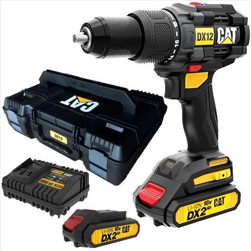 מברגה/מקדחה רוטטת נטענת +2 סוללות 2 אמפר ומטען DX12 CAT BL 18V