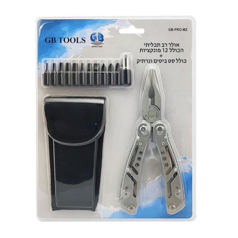 אולר רב תכליתי דגם "לדרמן" עם ביטים ונרתיק. הקיט כולל 12 פונקציות עם להב מנירוסטה ונרתיק ניילון חזק