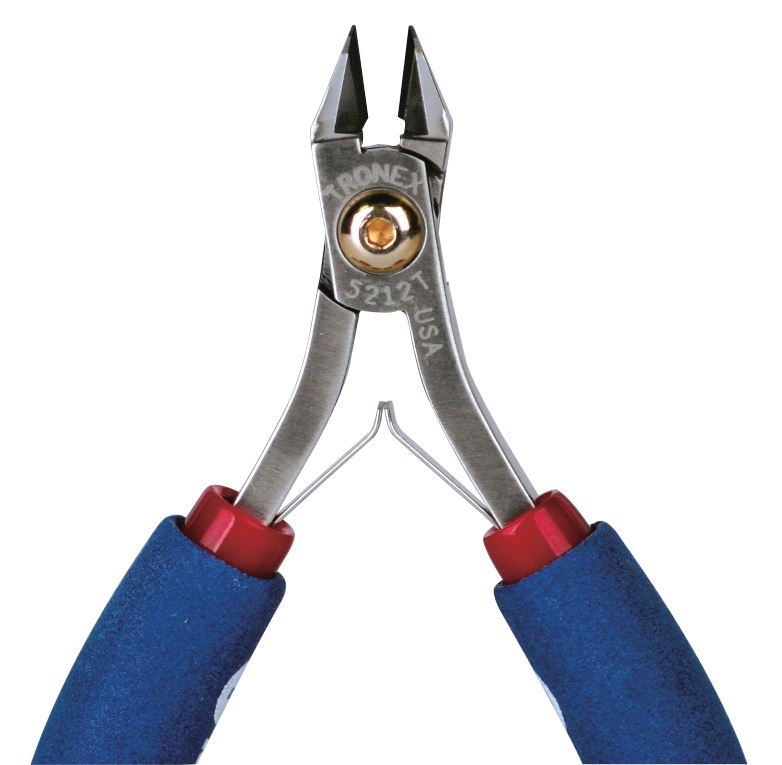 קטר T לחיתוך חוט קשה/פלדה עם קצוות וידיה אנטיסטטי ESD , שטוח FLUSH , כושר חיתוך 0.2-0.51 מ"מ , סוג שפתיים ודרגת קושי וידיה 79-81 HRC יצרן TRONEX