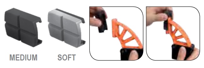 רפידות בינוניות ורכות ניתנות להחלפה לשימושים שונים, מבטיחות הידוק בטוח מבלי להשאיר סימנים. יש גם רפידות רזרביות. |