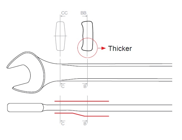 משטח רחב בפינות, כדי למקם טוב יותר את האגודל תוך כדי הידוק או שחרור בטוחים של הבורג.