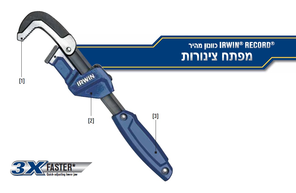 מפתח צינורות עם כיוון – מהיר לפתיחה וסגירה של מרווח הלסתות מבית היוצר IRWIN RECORD
