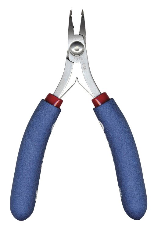 חותכי קצה ארוך בנינוני, קצה ראש קטן ועדין לחיתוך SMT, לשימוש חתחת מיקרוסקופ לחיתוך קצוות עדינים מרכיבים. צורת קצה החיתוך RAZOR FLUSH שטוח וחלק כתער, דגם 7071 עם ידית ארגונומית ארוכה. יצרן TRONEX