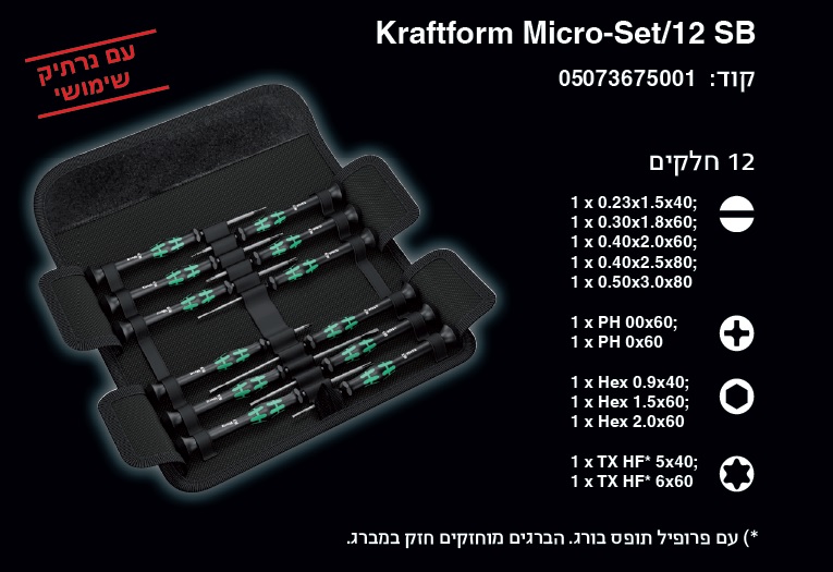 *מתאים לשימוש עם ביטים עם מוביל בצורת חצי ירח 4 מ"מ (סדרת WERA מספר 9) וביטים עם מוביל 4 מ"מ HIOS (סדרת WERA מספר 21).