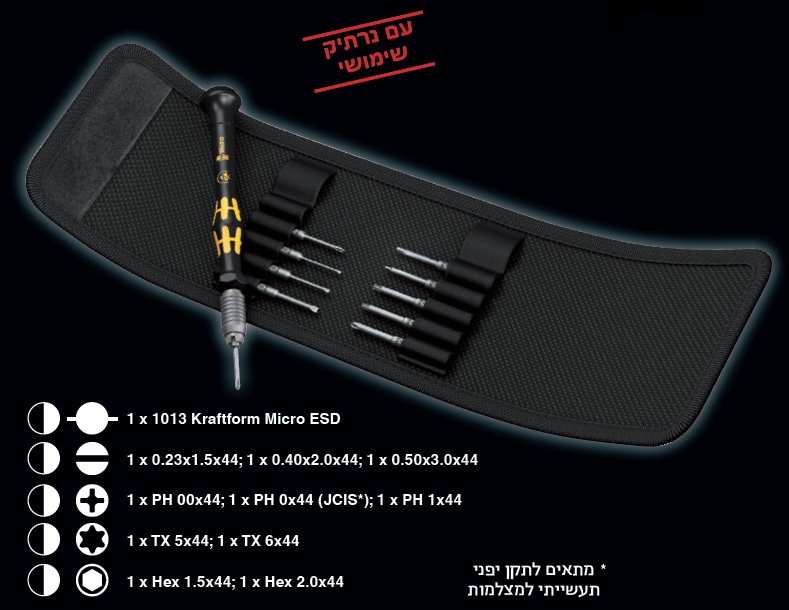 Kraftform Micro, סט קומפקטי עם מחזיק 10 ביטים(מוביל בצורת חצי ירח 4 מ"מ) בנרתיק שימושי.